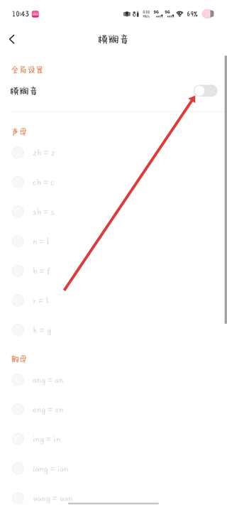 4、在模糊音設(shè)置頁面,點(diǎn)擊模糊音對(duì)應(yīng)的開關(guān)按鈕將其開啟。