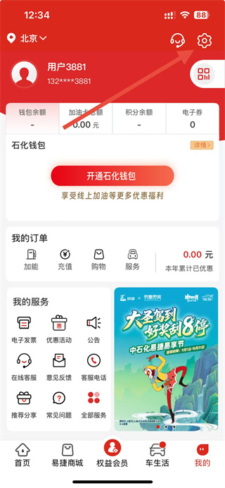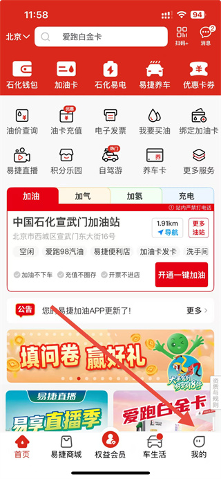 1、打開易捷加油app,點擊底部導航欄中的我的選項。