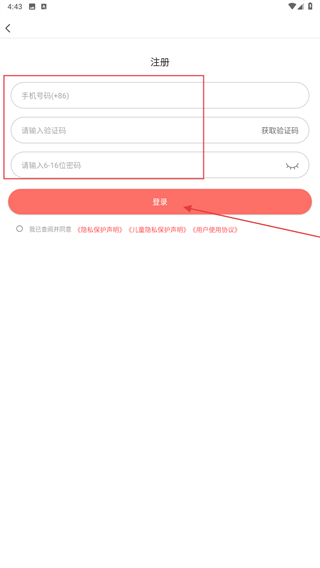 4、輸入手機號、驗證碼、密碼,再點擊登錄的按鈕即可成功。