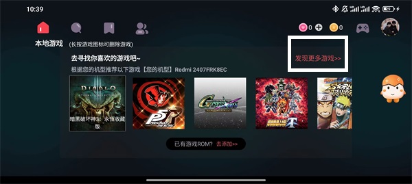 1、打開軟件,我們就可以在首頁看到很多推薦的游戲,點擊【發(fā)現(xiàn)更多游戲】就可以探索軟件支持的游戲庫;
