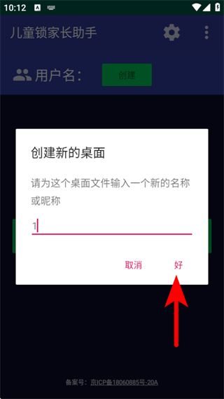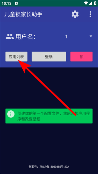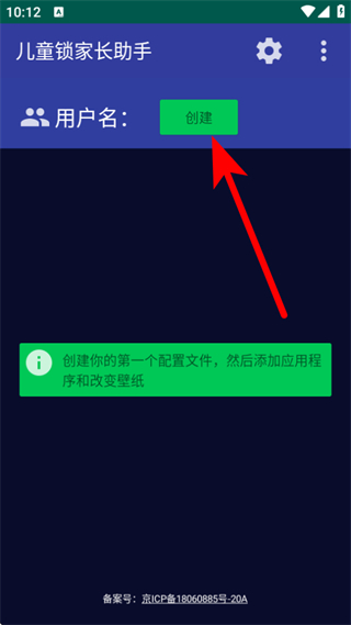 1、打開兒童鎖家長助手APP,我們需要點擊創(chuàng)建按鈕。