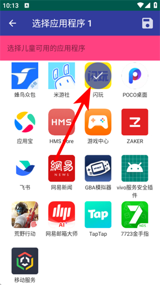 4、在應(yīng)用頁面勾選兒童可用的應(yīng)用程序,即可完成兒童鎖設(shè)置。