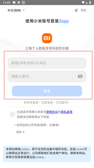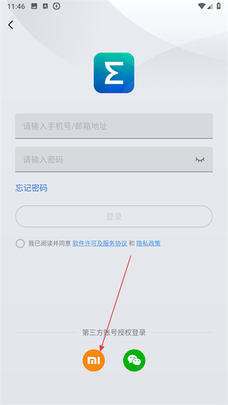 3、在登錄界面底部,找到小米賬號(hào)對(duì)應(yīng)的圖標(biāo)并點(diǎn)擊。