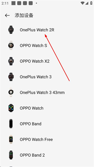 3、在添加設(shè)備頁面中,選擇對應的手表型號。