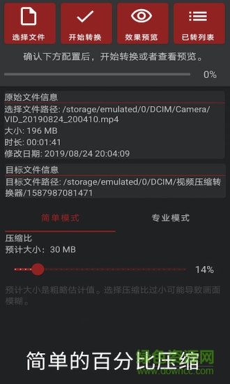 視頻壓縮轉(zhuǎn)換器,簡單操作即可把一個比較大的視頻壓縮到比較小的視頻,支持多種視頻文件格式。可以節(jié)約你的手機內(nèi)部存儲空間,壓縮容量?;蛘甙哑渌袷降囊曨l轉(zhuǎn)換成手機可以方便播放的mp4視頻。支持多種常見格式,比如mp4,avi,rmvb,mkv,flv等??梢园岩曨l壓縮上傳分享到朋友圈,抖音等社交平臺或者短視頻平臺。