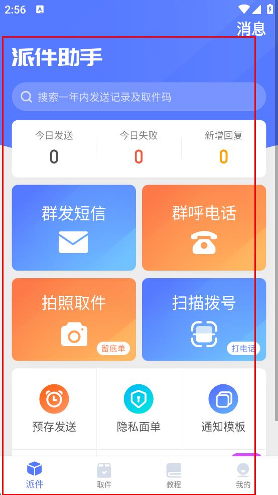 4、還可使用拍照取件、掃描撥號、預(yù)存發(fā)送等功能,輔助派件工作。