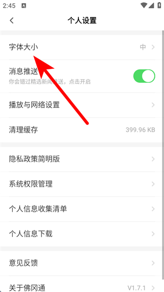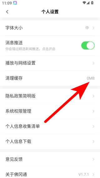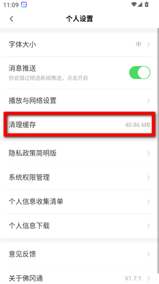 3、在個(gè)人設(shè)置頁面,點(diǎn)擊清理緩存選項(xiàng),進(jìn)入緩存清理界面。