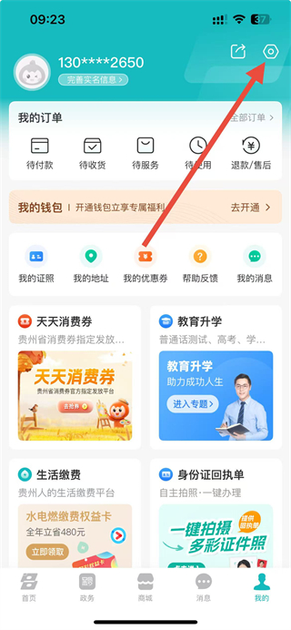 1、打開多彩寶APP,在我的頁面點擊右上角設(shè)置圖標(biāo)。