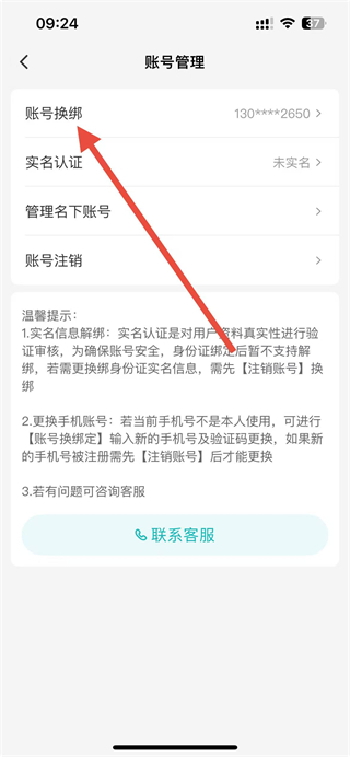 3、在賬號管理頁面中,點擊賬號換綁選項。