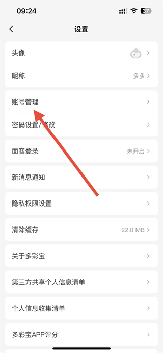2、進入設(shè)置頁面后,點擊賬號管理選項。
