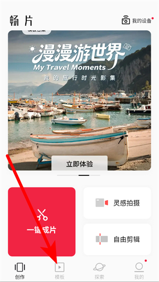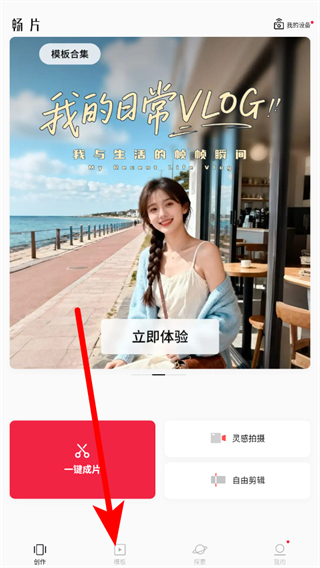 1、打開(kāi)暢片應(yīng)用,點(diǎn)擊底部的模板選項(xiàng)。