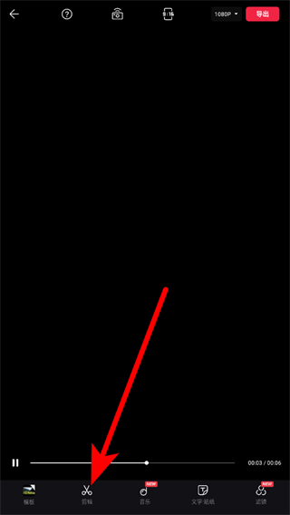 4、在編輯頁(yè)面點(diǎn)擊底部的剪輯選項(xiàng),對(duì)視頻進(jìn)行剪輯后點(diǎn)擊右上角導(dǎo)出即可。