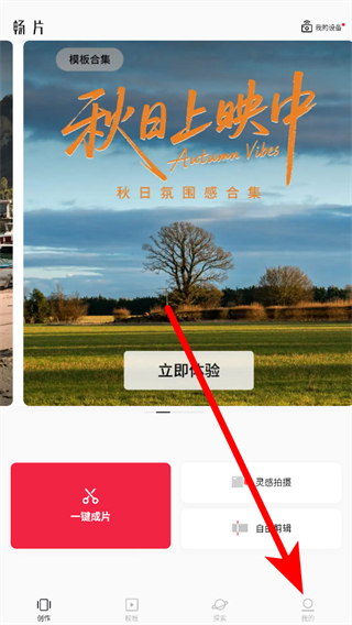 1、打開(kāi)暢片應(yīng)用,點(diǎn)擊底部導(dǎo)航欄的我的選項(xiàng)。