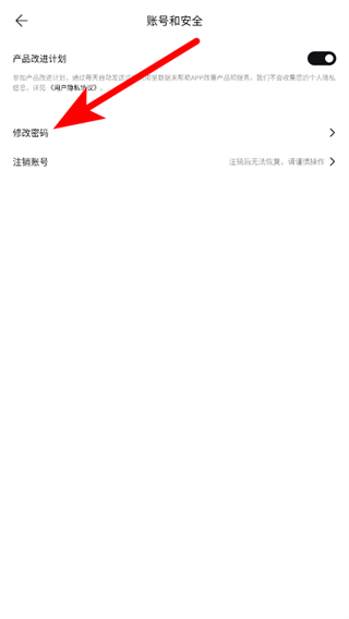 4、在賬號(hào)和安全頁(yè)面,點(diǎn)擊修改密碼選項(xiàng),按照提示完成密碼修改操作即可。