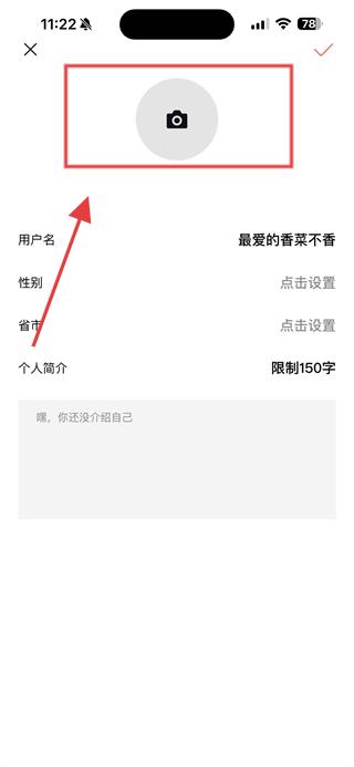 3、在個(gè)人資料編輯頁(yè)面,點(diǎn)擊頭像位置的相機(jī)圖標(biāo),進(jìn)入圖片選擇界面。