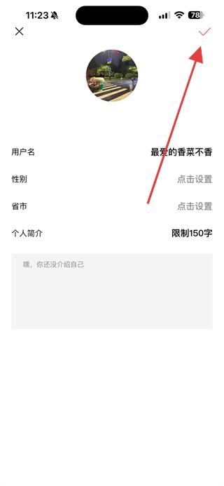5、選擇圖片后,點(diǎn)擊右上角的對(duì)勾按鈕,即可完成頭像修改。