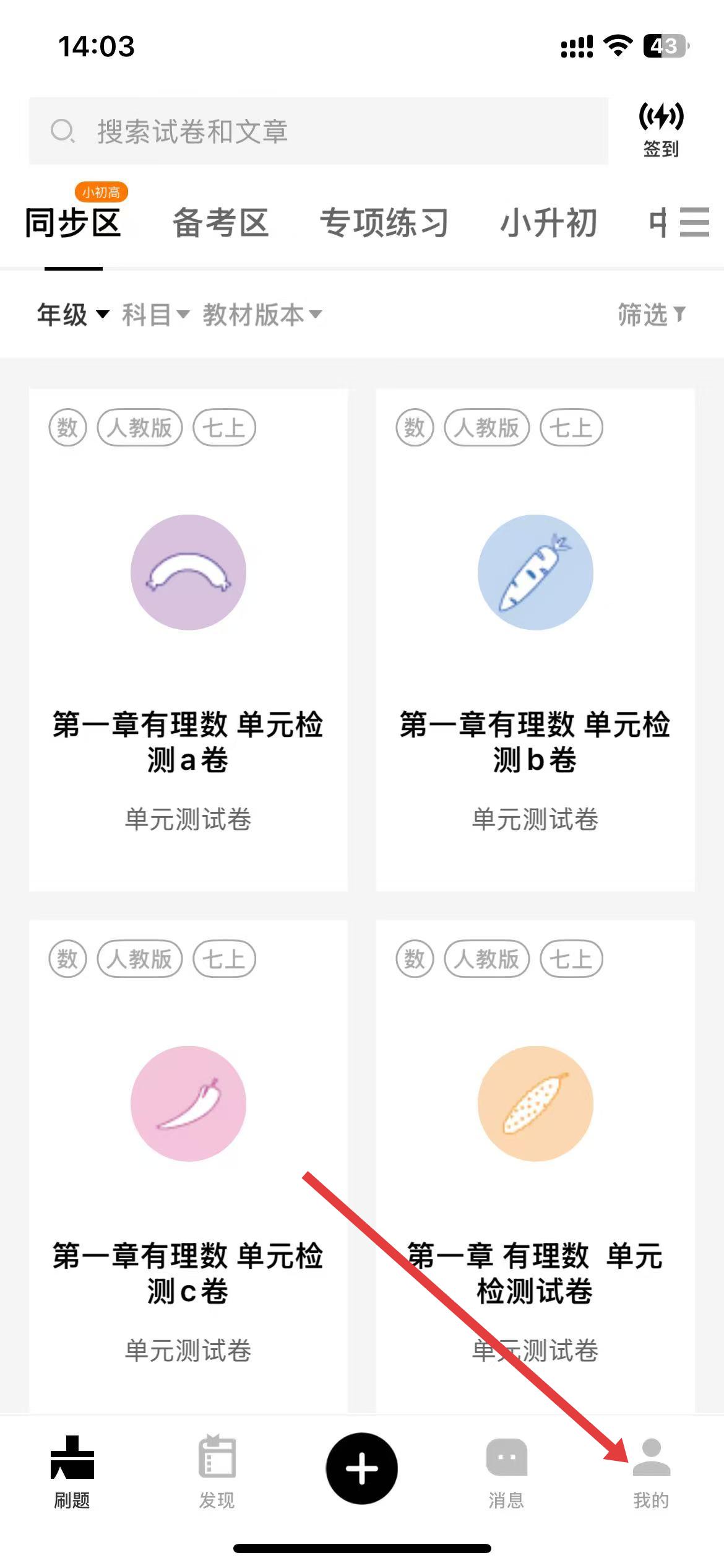 1、打開(kāi)瘋狂刷題APP,點(diǎn)擊底部導(dǎo)航欄中我的選項(xiàng),進(jìn)入個(gè)人中心頁(yè)面。