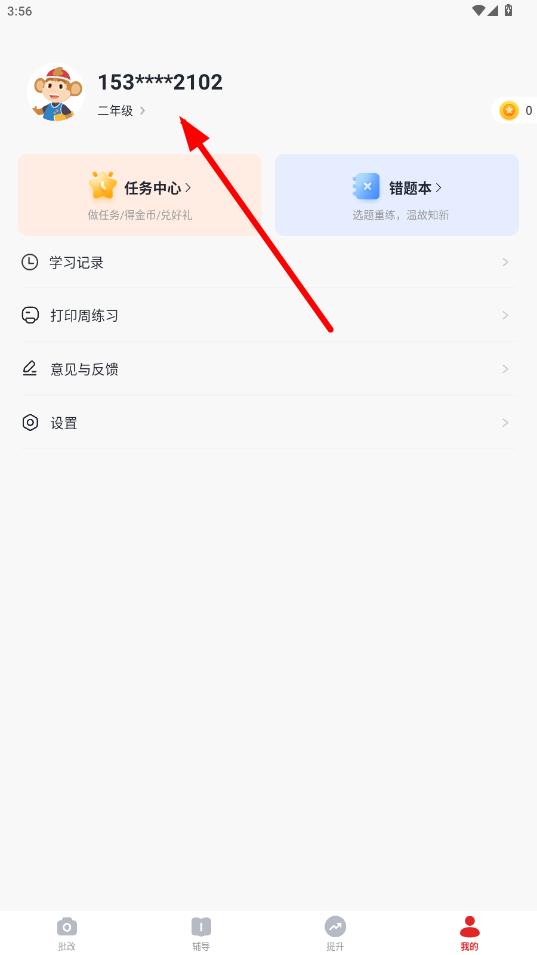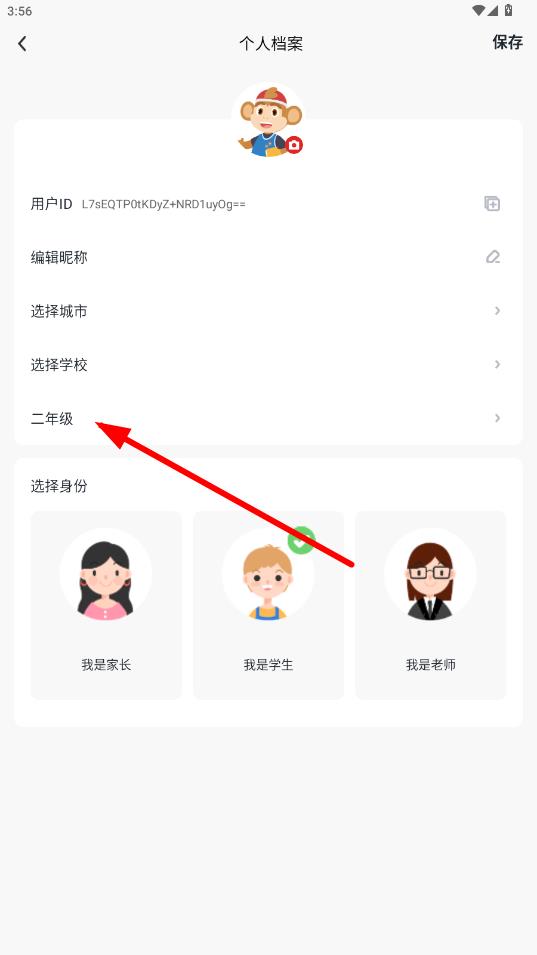 3、在個(gè)人檔案頁(yè)面里,點(diǎn)擊當(dāng)前顯示的年級(jí)如二年級(jí)。