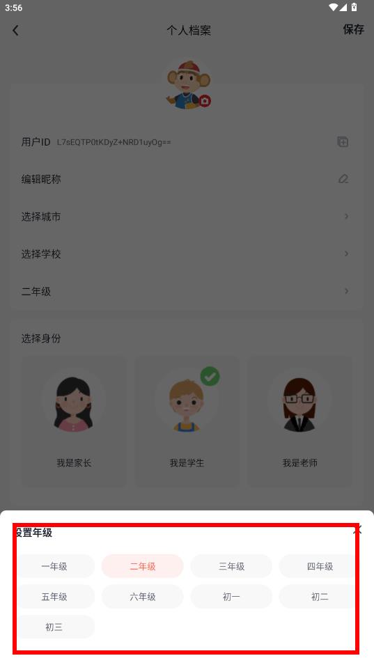 4、在彈出的設(shè)置年級(jí)選項(xiàng)中,點(diǎn)擊選擇你需要的年級(jí),完成后系統(tǒng)會(huì)自動(dòng)保存年級(jí)信息。