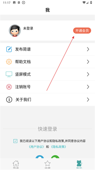 1、打開(kāi)簡(jiǎn)譜APP,點(diǎn)擊右下角我的選項(xiàng)。