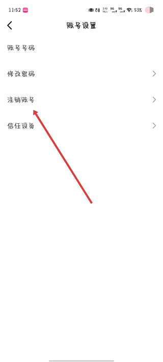 3、進(jìn)入賬號(hào)設(shè)置頁(yè)面,點(diǎn)擊注銷賬號(hào)選項(xiàng)。