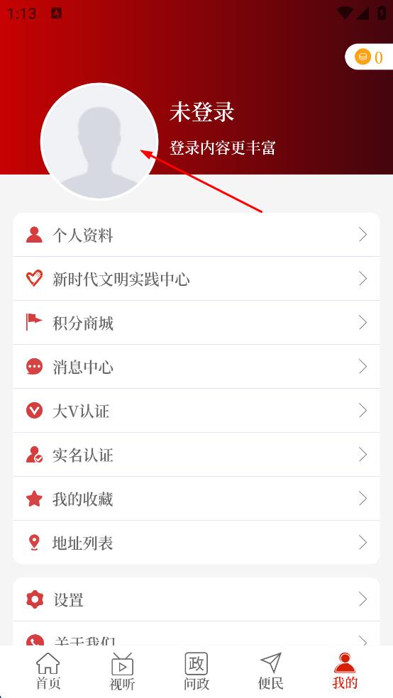 3、在個人頁面,點擊未登錄區(qū)域,進(jìn)入登錄頁面。