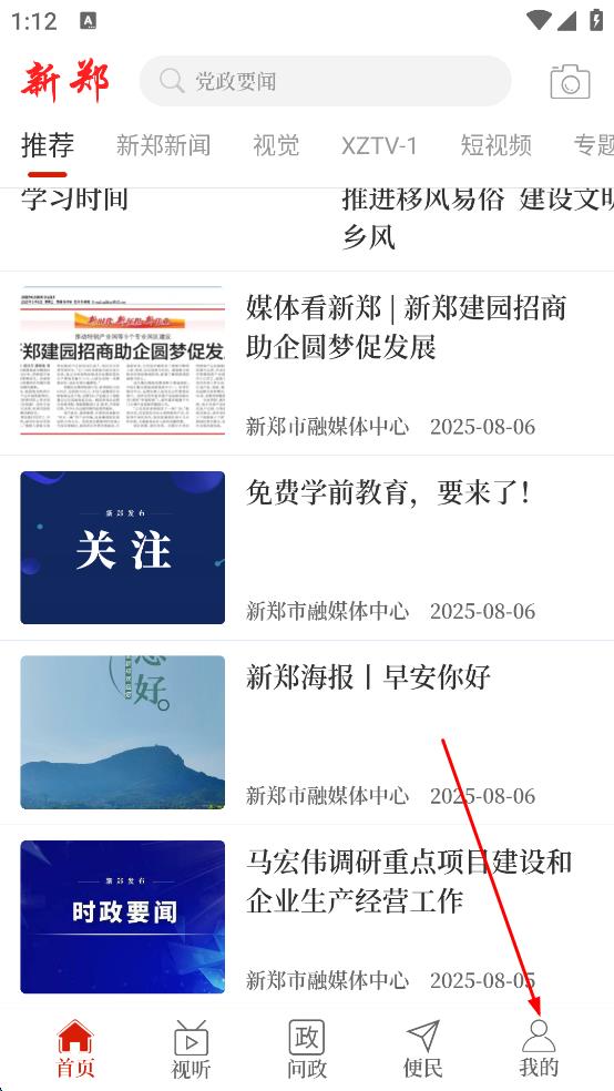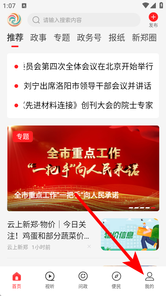 2、在云上新鄭首頁,點擊右下角我的,進(jìn)入個人頁面。