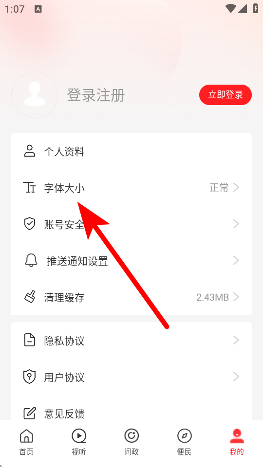 2、在個人的頁面,需要點擊字體大小,彈出字體大小的選擇框。