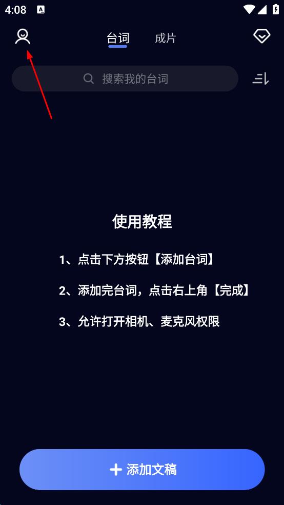 1、打開(kāi)靈敢提詞器,點(diǎn)擊左上角頭像。
