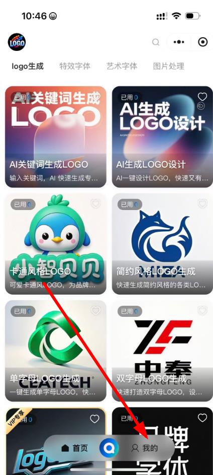 1、打開(kāi)一鍵logo設(shè)計(jì)應(yīng)用,進(jìn)入主界面后點(diǎn)擊底部導(dǎo)航欄中的我的。