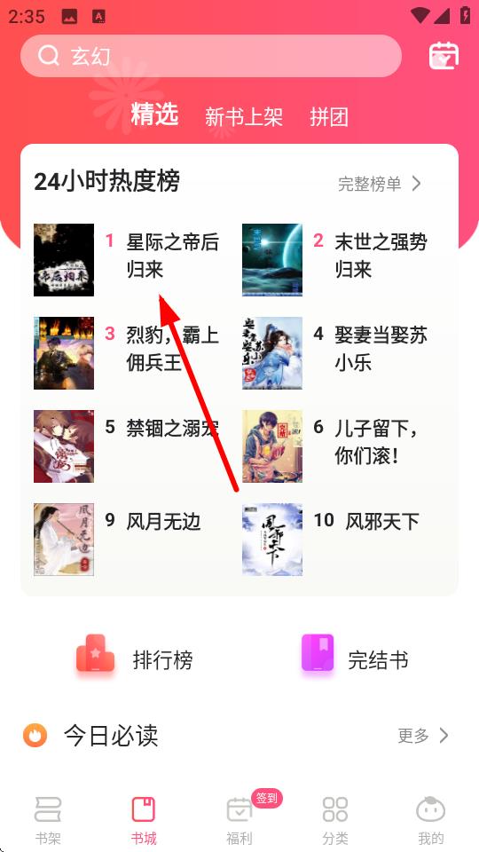 2、在書城頁面的24小時(shí)熱度榜等分類中,選擇想聽的小說,比如點(diǎn)擊星際之帝后歸來。