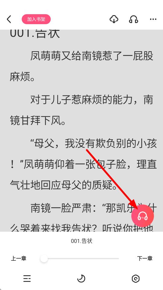 4、在閱讀界面中,點(diǎn)擊右下角帶有耳機(jī)圖案的按鈕,即可開始聽書。