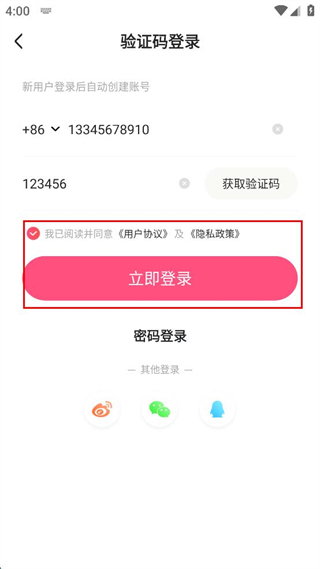 4、勾選同意用戶協(xié)議,點(diǎn)擊“立即登錄”按鈕。