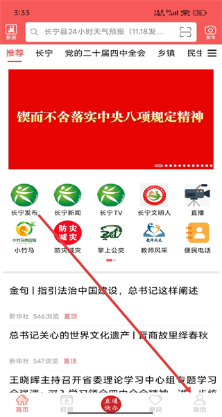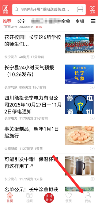 1、打開(kāi)掌上長(zhǎng)寧APP首頁(yè),點(diǎn)擊底部我的,進(jìn)入個(gè)人頁(yè)面。