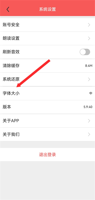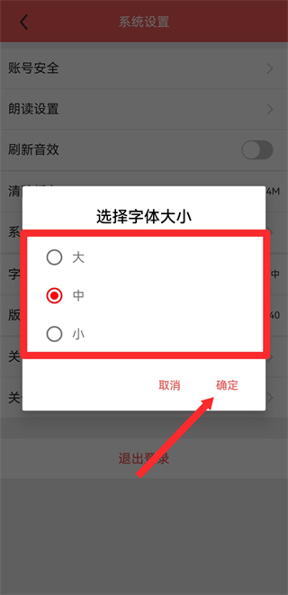 3、在系統(tǒng)設(shè)置界面里,點(diǎn)擊字體大小,彈出選擇字體大小的選項(xiàng)框。