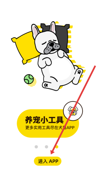 2、在養(yǎng)寵小工具引導(dǎo)界面,可以通過(guò)點(diǎn)擊底部黃色進(jìn)入APP按鈕,進(jìn)入軟件登錄頁(yè)面。