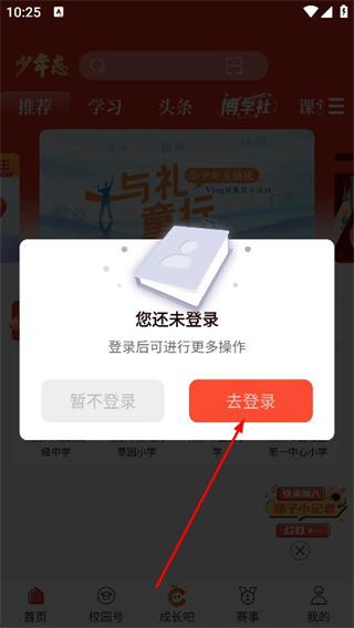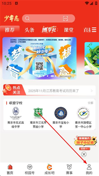 1、打開少年志,點(diǎn)擊底部導(dǎo)航欄的我的選項(xiàng)。