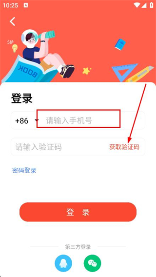 3、在輸入框中填寫手機(jī)號,點(diǎn)擊獲取驗(yàn)證碼。