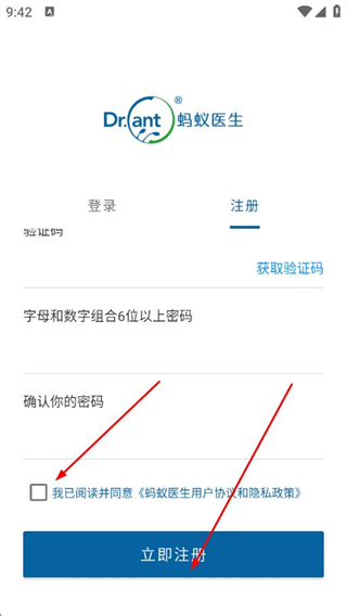3、勾選同意用戶協(xié)議和隱私政策后,點(diǎn)擊立即注冊(cè),完成賬號(hào)注冊(cè)流程。