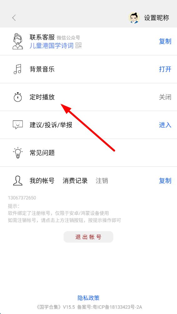 2、在設(shè)置頁面里找到并點(diǎn)擊定時(shí)播放選項(xiàng),觸發(fā)定時(shí)設(shè)置操作。