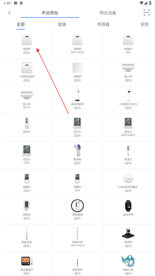 3、在手動添加設備的頁面內(nèi),選擇并點擊進行添加。