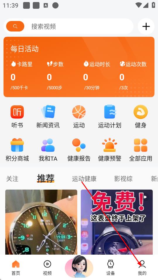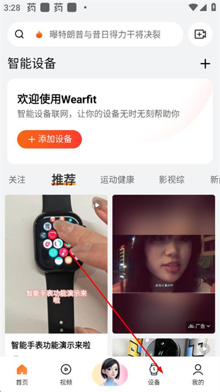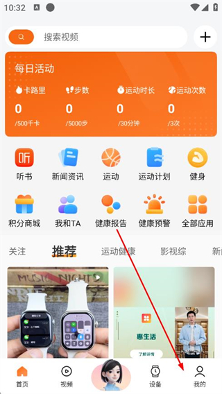 1、打開wearfitpro應(yīng)用,點(diǎn)擊底部導(dǎo)航欄最右側(cè)我的選項(xiàng)。