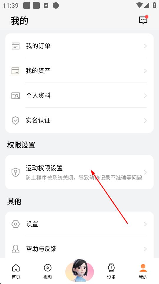 2、在“我的”頁面中,找到權(quán)限設(shè)置板塊,點(diǎn)擊運(yùn)動(dòng)權(quán)限設(shè)置。