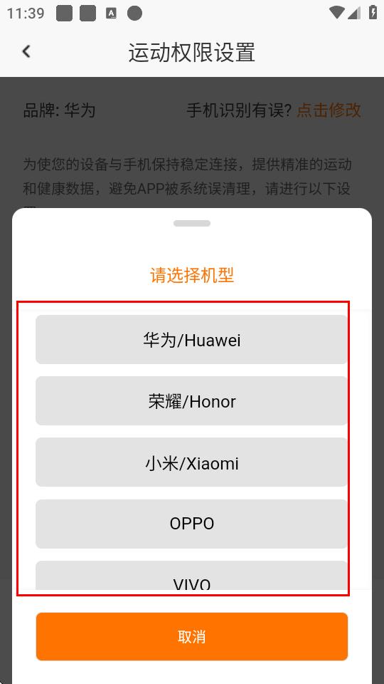 4、在彈出的選擇機(jī)型框中,選擇正確的手機(jī)品牌。