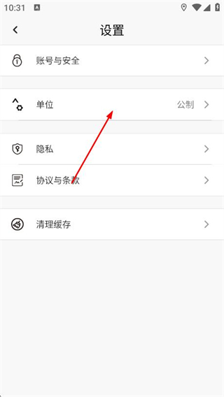 3、在設(shè)置界面點(diǎn)擊單位,進(jìn)入單位設(shè)置頁面。