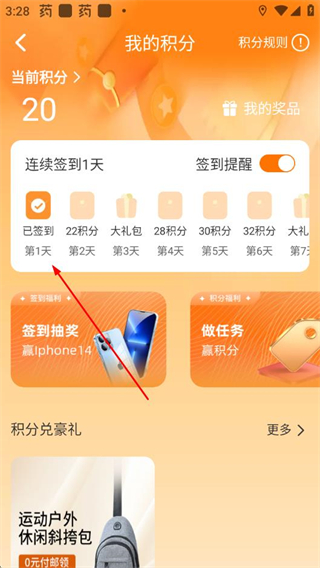 3、在我的積分頁面完成每日簽到,可獲得對應(yīng)積分。