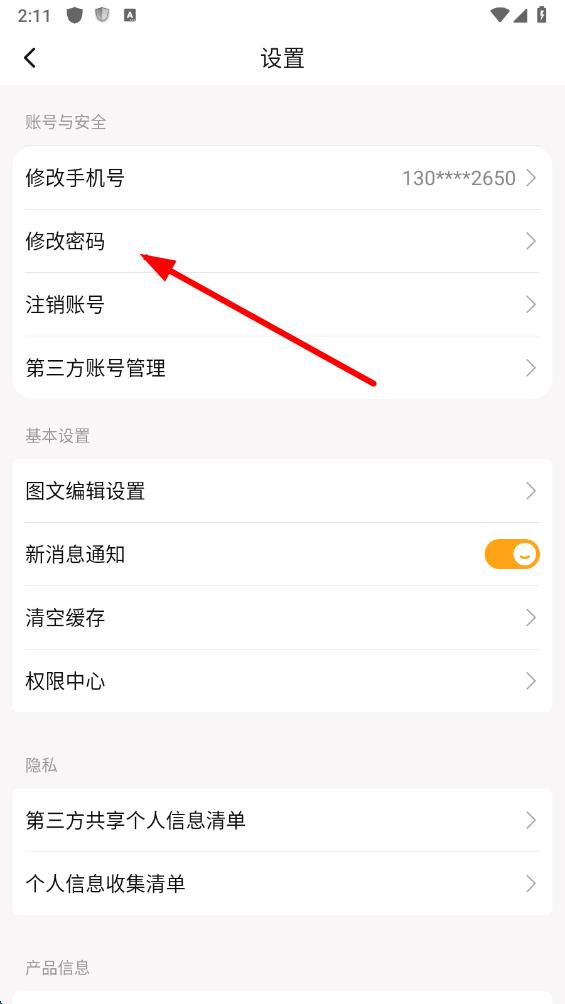 3、在設(shè)置頁(yè)面中,找到修改密碼選項(xiàng)并點(diǎn)擊,進(jìn)入設(shè)置密碼界面。