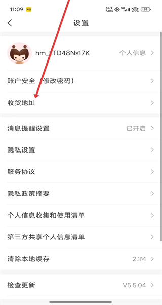 2、在進(jìn)入到設(shè)置頁面后,可以點(diǎn)擊收貨地址選項(xiàng),進(jìn)行相關(guān)操作。