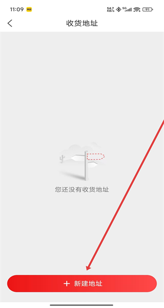 3、在跳轉(zhuǎn)到收貨地址頁面中,可以點(diǎn)擊下方新建地址按鈕,進(jìn)行新增地址。
