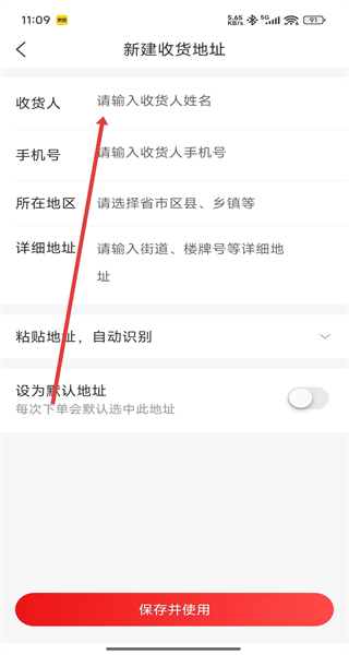 4、可以通過依次在輸入框中填寫收貨信息后,點(diǎn)擊下方保存按鈕,完成新增添加操作。